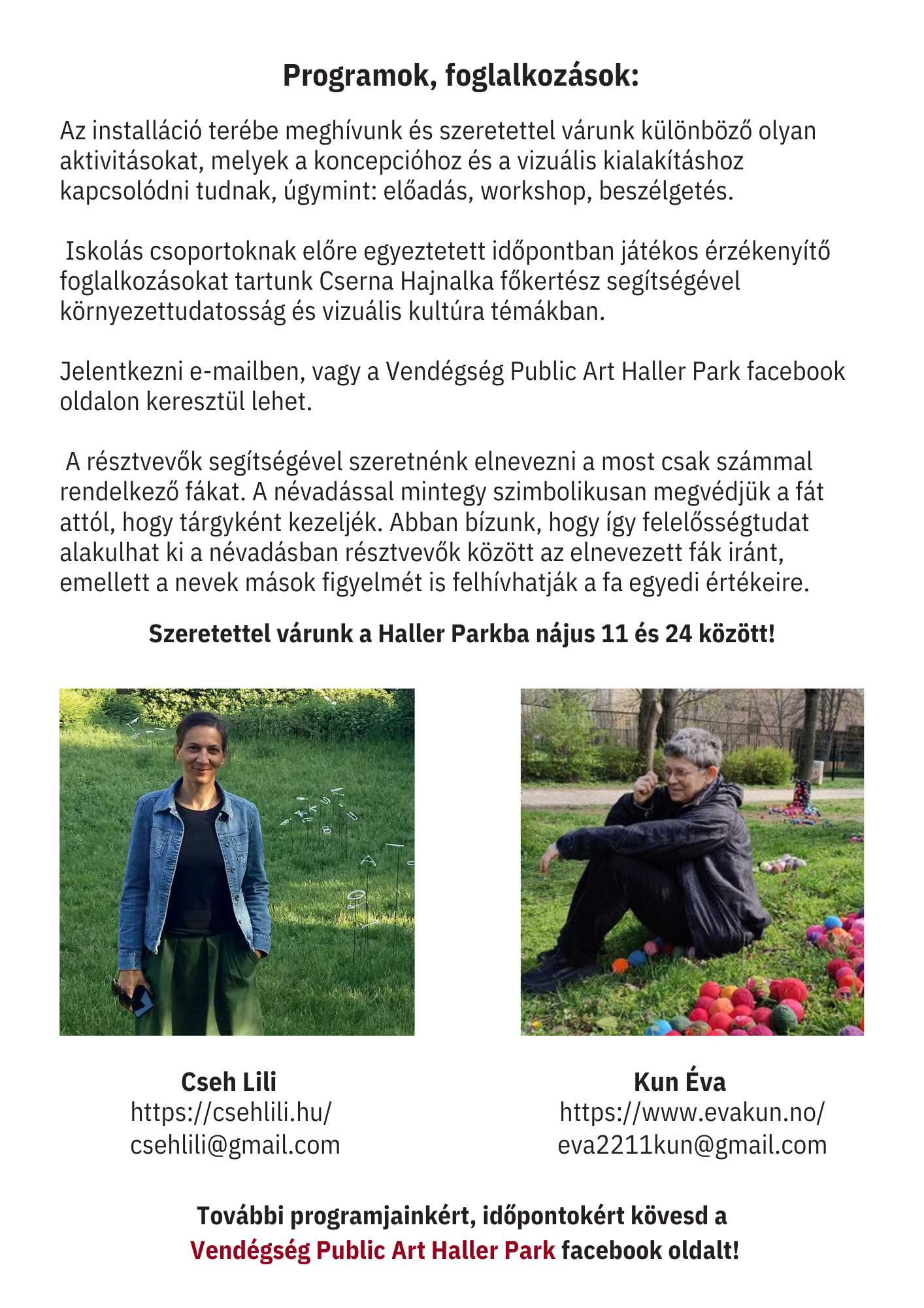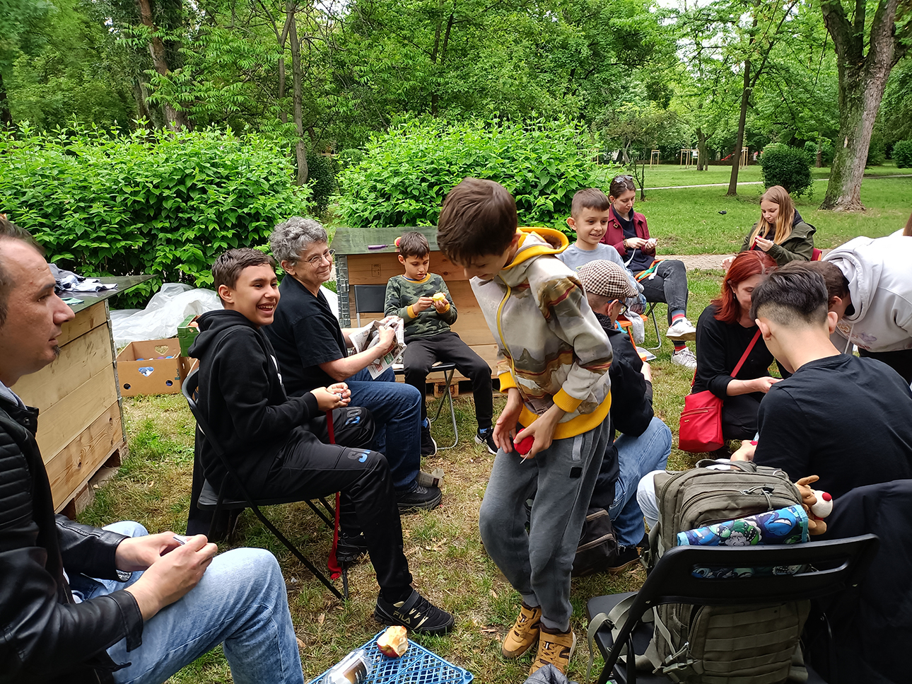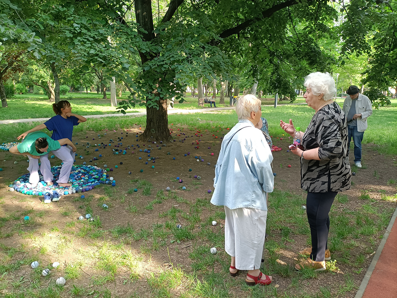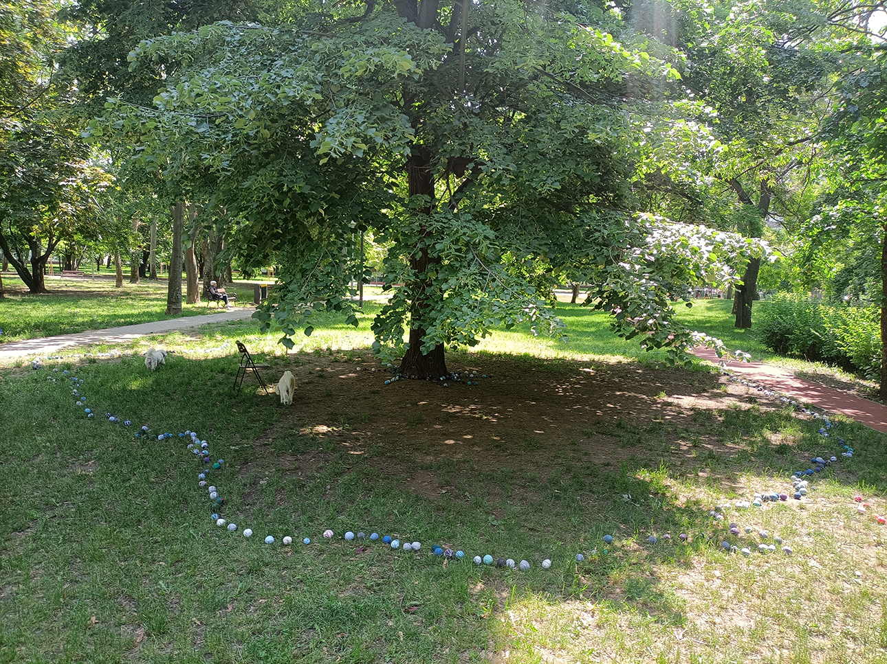 Szerettük volna a park egy-egy fájára irányítani a figyelmet azok terének vizuális kihangsúlyozásával. A környéken élő embereket vendégségbe hívtuk a fához, hogy töltsenek egy kis időt vele, és egymással.